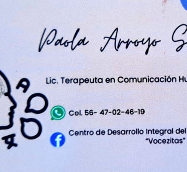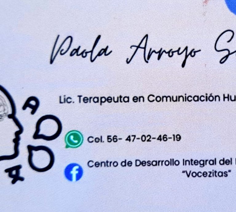 La Lic. Paola Arroyo Silva es egresada del Instituto Nacional de Rehabilitación como Terapeuta en Comunicación Humana.